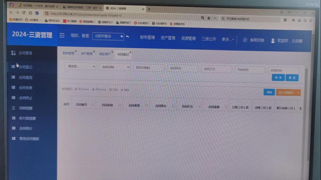 登录三资管理平台进行合同登记
