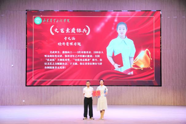 刘晓晴同学从陆军中士到省考录取,从“四有”优秀士兵到心理咨询师,凭借军人果敢,在就业创业路奋进,被评为就业创业标兵;段一凡同学以笔为锋、以镜头为眼,撰写百余篇稿件,拍摄百余场活动照片,用键盘与镜头让青春在新闻事业中闪光,被评为新闻传媒标兵;朱志高同学以实干践行公益担当,从社区到乡村振兴,受益群众达2000余人,用爱与阳光让公益之花绽放,获评社会公益标兵;于文涵同学以青春之声传播时代正能量,服务群众1500余人的红色宣讲展现了文艺赋能社会的力量,获评文艺素质标兵。