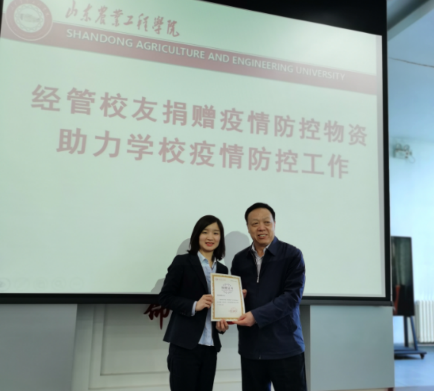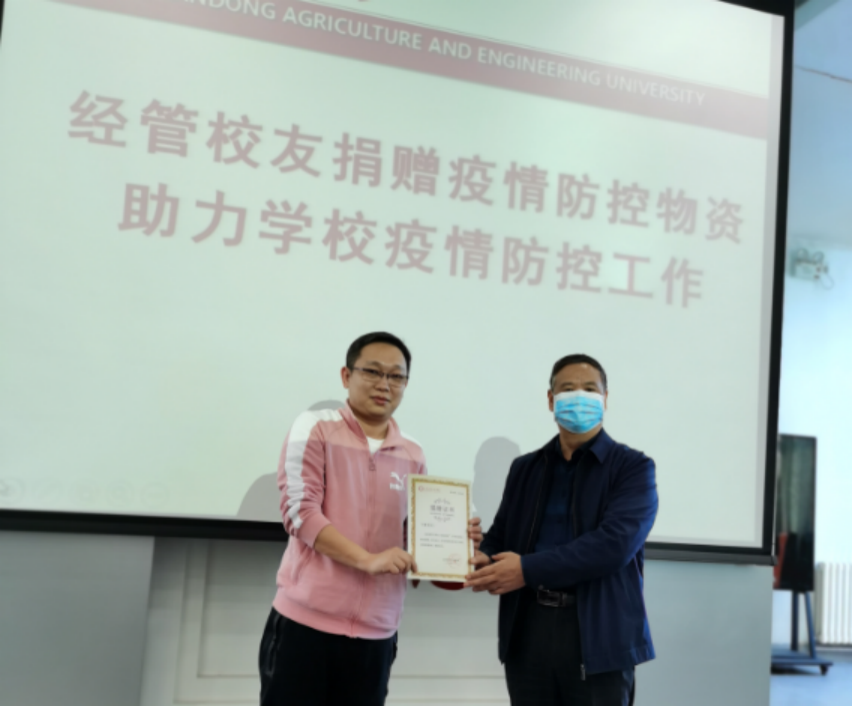 4月20日下午,经济管理学院04级经管、营销、投资专业的张勇、胡滨、秦鹏、丁睿、吕伟、于启文、屈媛媛、闫小兵、孙鑫等毕业校友情系母校,向母校捐赠一批疫情防控物资,助力学校疫情防控工作。校党委书记丁希滨,副书记、校长王西奎,党委委员、副校长张伟和校长办公室、后勤管理处、经济管理学院等有关部门负责人等出席捐献仪式。捐赠仪式由张伟副校长主持。