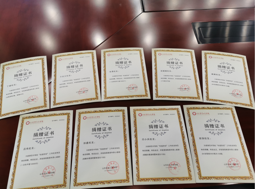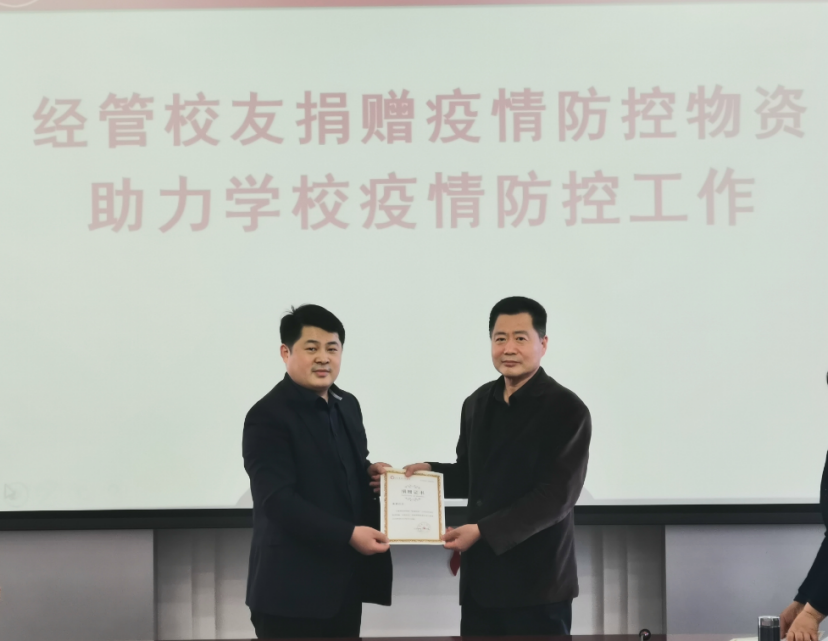 丁书记、王校长、张副校长向校友们颁发了捐赠荣誉证书,并与学生进行亲切座谈。校友们纷纷向母校领导汇报各自的工作情况,感谢母校的培养,表示愿与母校同舟共济、共抗疫情。