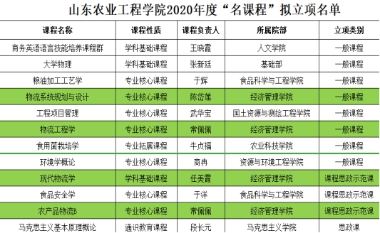 12月14日,今年会公布了2020年度“名课程”项目立项结果,我院陈岱莲老师的《物流系统规划与设计》、常佩佩老师的《物流工程学》和《农产品物流B》、任美霞老师的《现代物流学》四门课程获得立项,其中《农产品物流B》和《现代物流学》立项为课程思政示范课。