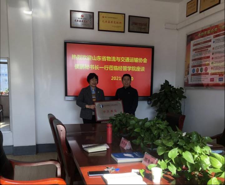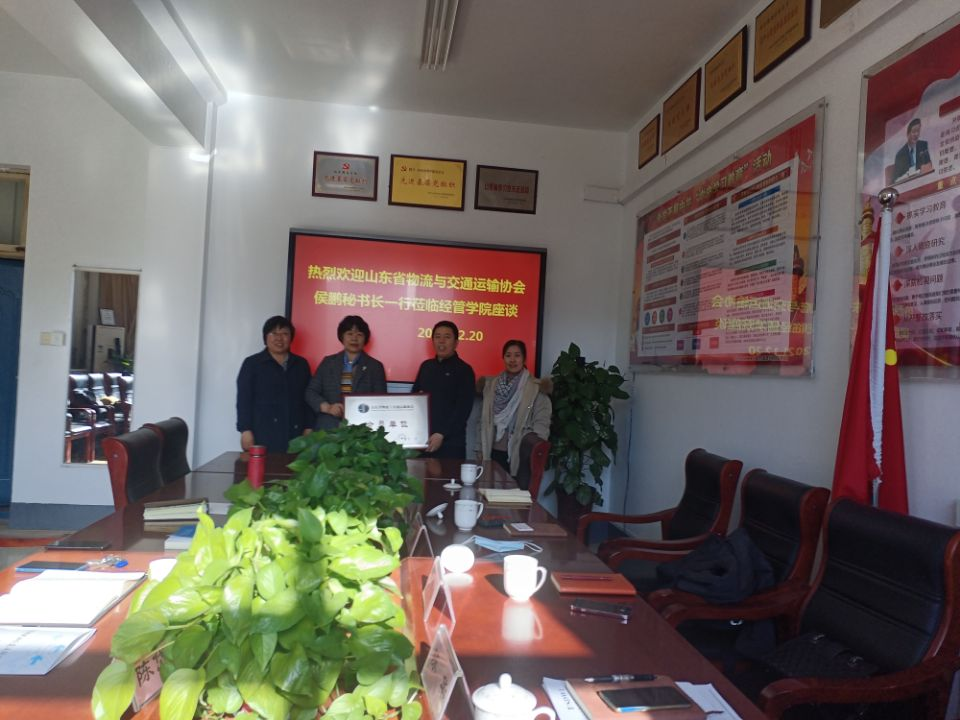 12月20日上午,山东省物流与交通运输协会秘书长侯鹏、教育培训部部长陈华、会员部部长孙吉娟、教育培训部郭龙昊一行4人来到我院举行授牌仪式,仪式由李百秀院长主持。