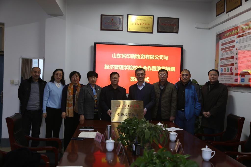 山东省印刷物资有限公司按协议将向经济管理学院捐赠人民币贰拾万元,用于资助品学兼优的贫困学生。沈铁总经理说:山东省印刷物资有限公司于1980年11月17日成立,隶属于山东出版集团,是山东纸张、纸制品、木浆、印刷包装机械的最大国内外贸易机构,年销售收入人民币15亿元。企业始终坚持“以人为本,开拓创新,诚信经营,和谐共赢,追求完美”的经营宗旨,企业在创造财富的同时,也十分注重社会服务,此次与贵校签约,是企业首次与高校合作,希望以此为契机,在物流工程、酒店管理等方面不断融合发展,校企共荣共赢。