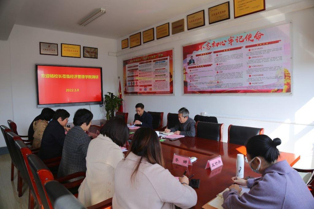 2022年3月8日下午,校党委委员、副院长杨振宁到经管学院调研公费农科生教学管理工作情况,教务处处长王明晶陪同调研。