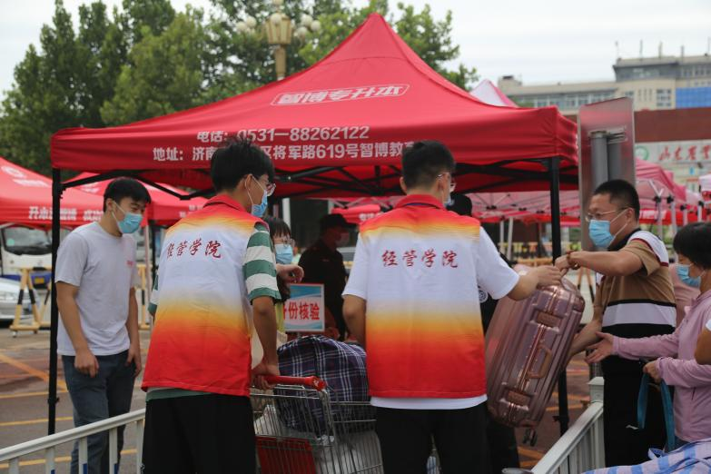 志愿者不惧风雨,任劳任怨,认真负责帮助新生搬运行李。良好的工作素养和态度使我院成为迎新工作中一道靓丽风景线。
