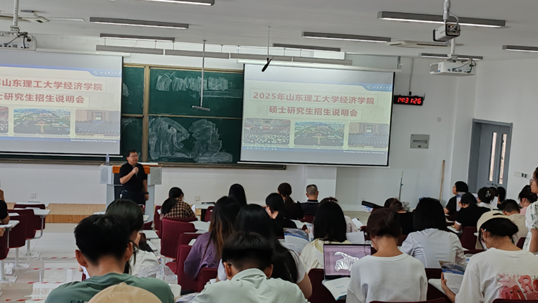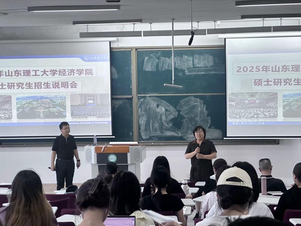 2024年6月27日,经济管理学院邀请山东理工大学经济学院院长张志新在淄公南楼A302开展硕士研究生招生说明会。经济管理学院党总支书记马勇、院长李百秀和副院长曲文俏参加此次会议。李百秀院长主持,山东理工大学经济学院张志新院长担任本次研究生招生说明会主讲人。