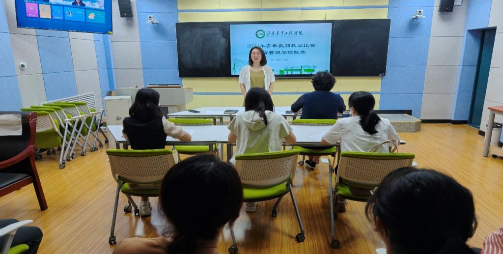 8月29日,2024年经济管理学院青年教师教学比赛的课堂教学展示在济南校区1号楼304智慧教室进行。本次大赛共有17位青年教师参加,院长李百秀、副院长曲文俏、物流工程教研室主任陈岱莲、金融工程教研室主任李贵梅及山东省第十一届高校青年教师教学比赛二等奖获得者李娜担任评委,学院青年教师进行了观摩。大赛由曲文俏主持。