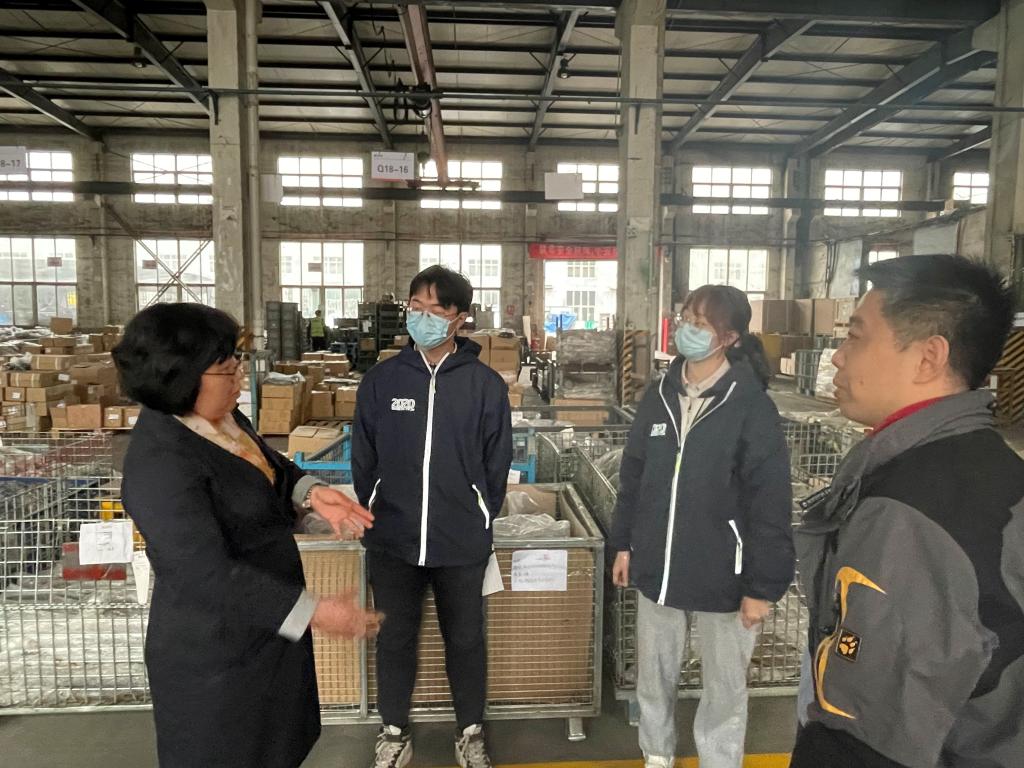 3月29日下午,学校迎评实践教学基地建设专班成员教务处副处长付琦、后勤管理处副处长李鹏实地调研毕业生在中邮物流有限公司的实习情况。看望了正在进行毕业实习的73名物流工程专业学生。陪同调研的还有经济管理学院院长李百秀、物流教研室主任陈岱莲、山东中邮物流第二分公司副经理杨云飞、大圆满人力资源公司经理孙靓和所晓东老师。