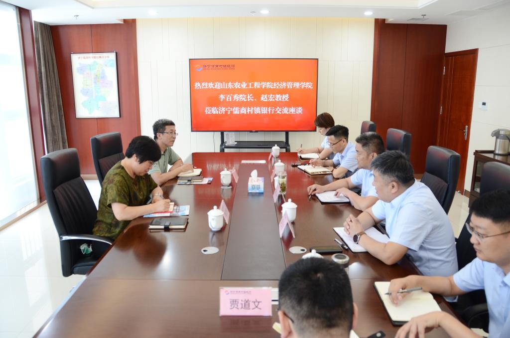 济宁儒商村镇银行是一家为区域经济发展服务的股份制金融企业,其主要业务是为区域内村镇企业、个人提供融资服务。该行在助力乡村振兴、科技赋能业务发展与精细化管理方面都取得较好的业绩,在同类银行中名列前茅。经济管理学院的金融工程专业与农林经济管理专业人才培养目标与济宁儒商村镇银行的业务目标有较好的契合度,双方的深度合作会助力学院应用型本科专业培养目标的实现,助力学院相关学科科研能力的提升。