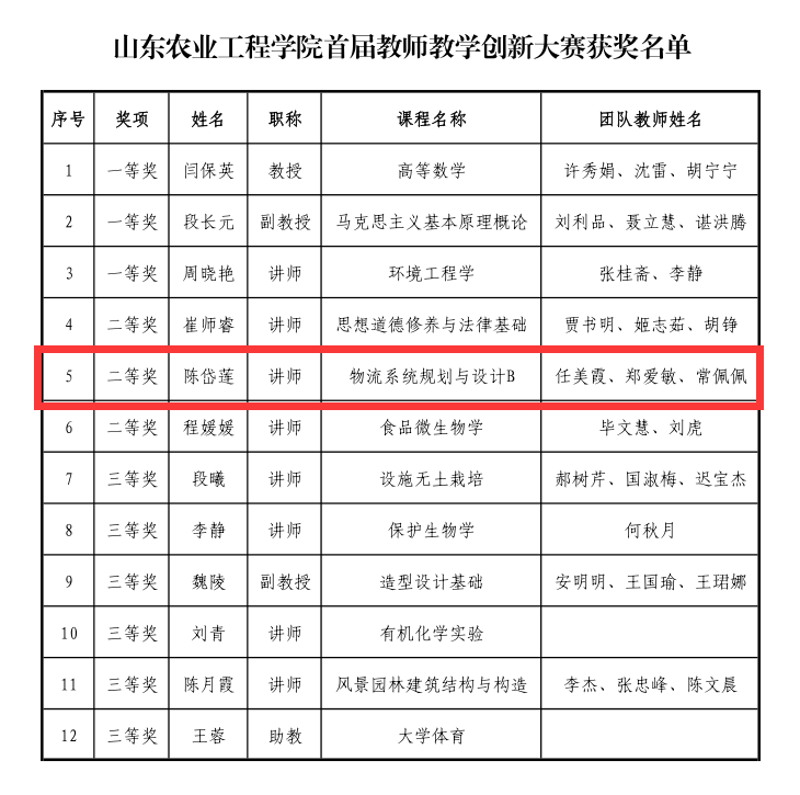 在学校举办的首届教师教学创新大赛中,陈岱莲、任美霞、郑爱敏、常佩佩老师参赛的《物流系统规划与设计