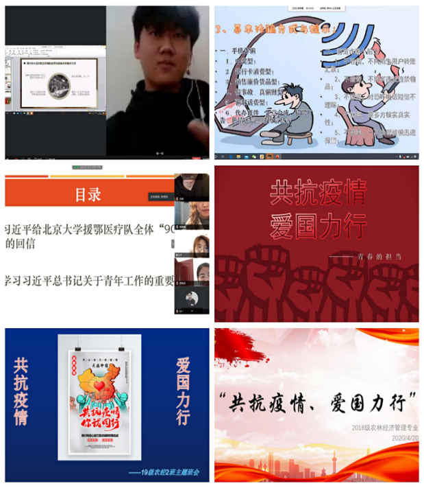 为深入学习贯彻习近平总书记给北京大学援鄂医疗队90后党员重要回信精神,切实做好省教育厅组织的“山东高校官微@大接龙”活动,充分展现经济管理学院青年师生爱国奋斗、自强不息的良好精神风貌,我院结合“共抗疫情、爱国力行”主题宣传教育活动与自身实际,相继开展了以“共抗疫情、爱国力行”为主题的“云班会”、征文征集、演讲比赛、书画作品征集等系列活动,主题教育的开展有效地引导好青年学子坚定爱党、爱国、爱社会主义的信念,进一步坚定了中国特色社会主义道路自信、理论自信、制度自信与文化自信。