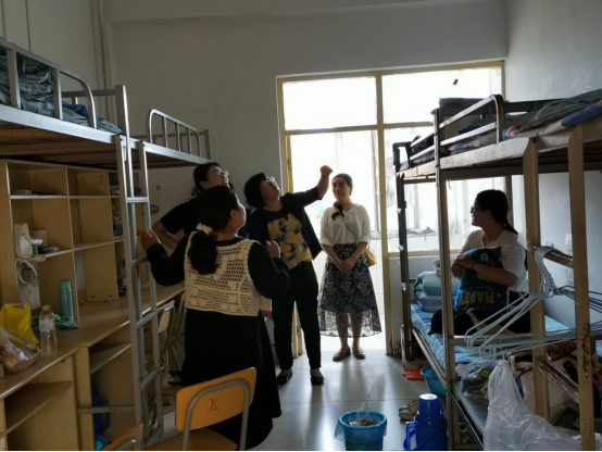 下午,李百秀院长带领物流教研室主任徐伟老师和辅导员曹奇老师到女生宿舍看望了全体女生并对大家提出的问题给予了答复和及时解决。