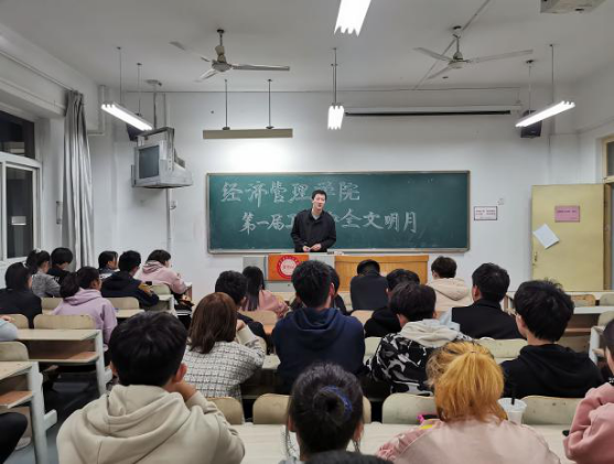 10月25日晚,经济管理学院在北校区2号教学楼525教室举行了卫生安全文明月活动启动仪式。启动仪式由学生会副主席崔衍聪同学主持,政治辅导员曹奇、王太然老师到场进行指导。