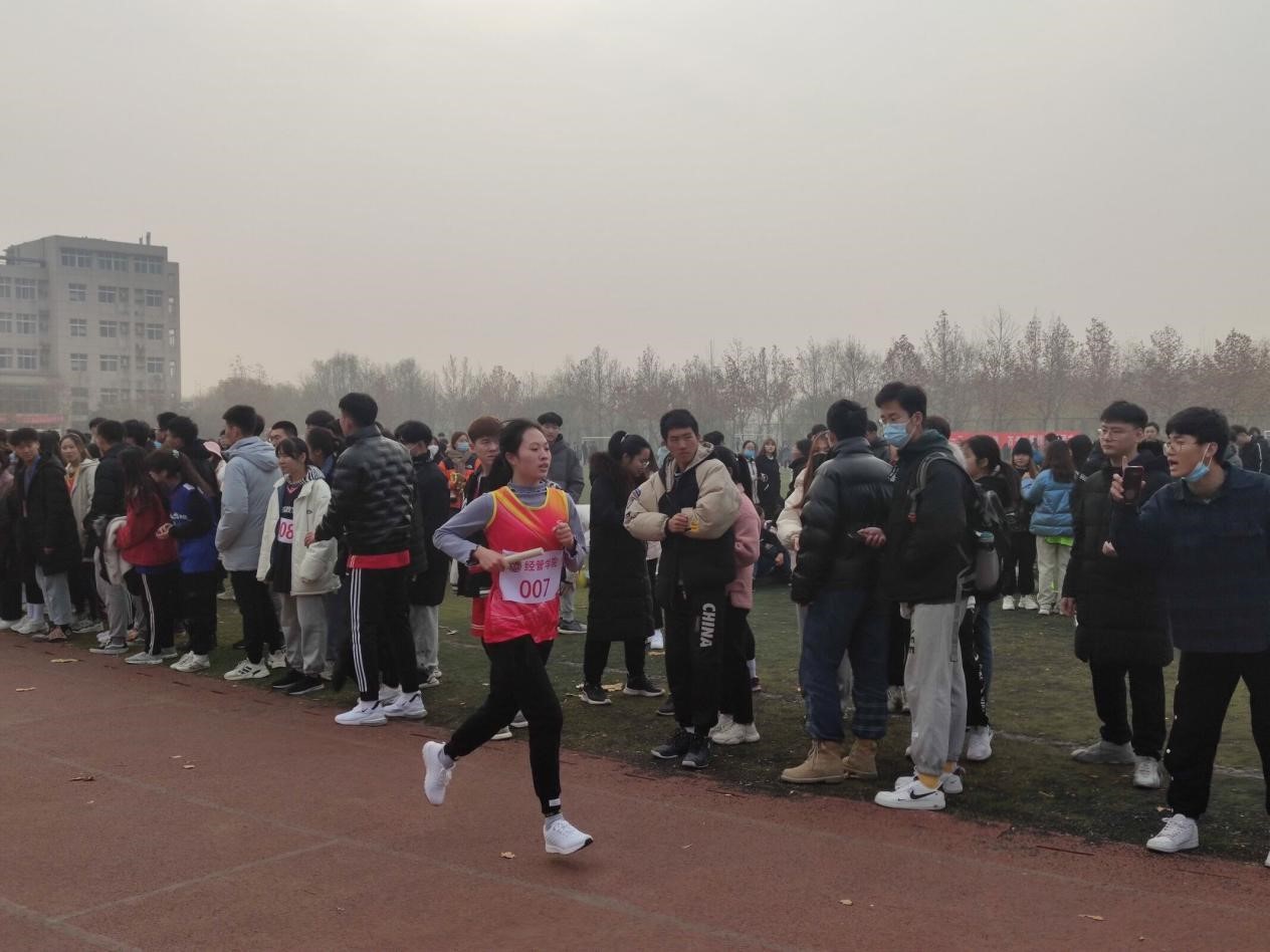比赛于10日下午两点正式开始。一声哨响,经管选手们斗志昂扬奔跑在赛道上。而赛场下经管志愿者们自发组成啦啦队,热情洋溢地为同学们加油呐喊,鼓舞士气。一时间助威声、喝彩声此起彼伏,赛场的气氛逐渐达到高潮。