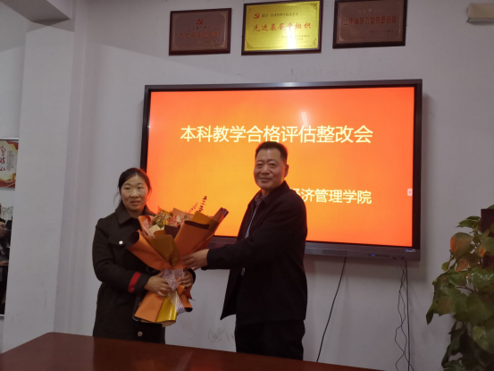 校党委委员、副校长张伟向周海霞老师颁发了鲜花,祝贺她被评为学校优秀辅导员。并希望周海霞老师能够珍惜荣誉、再接再厉,认真履行教书育人、管理育人、服务育人职责,加强学生思想政治教育和学生各项管理与服务,促进学生全面发展。