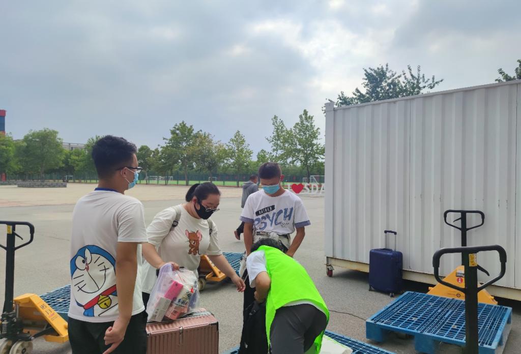 早秋的天,清凉飒爽。上午七点,学生志愿者们就来到了学校门口,等待新生的到来。在迎接新生过程中志愿者引导新生签到和领取宿舍钥匙,并在去往宿舍的过程中帮助新生运送行李。到达宿舍后新生进行隔离等待二次核酸检测。