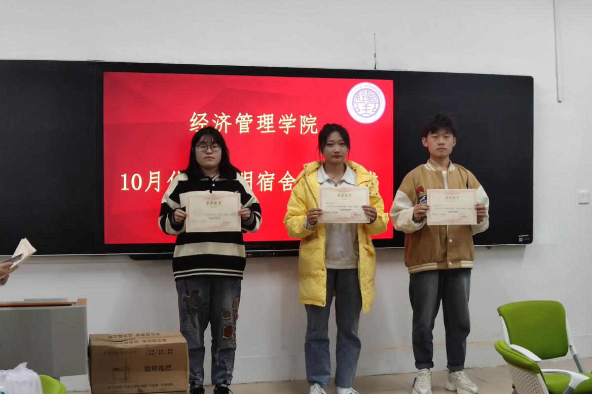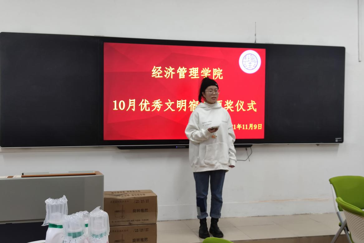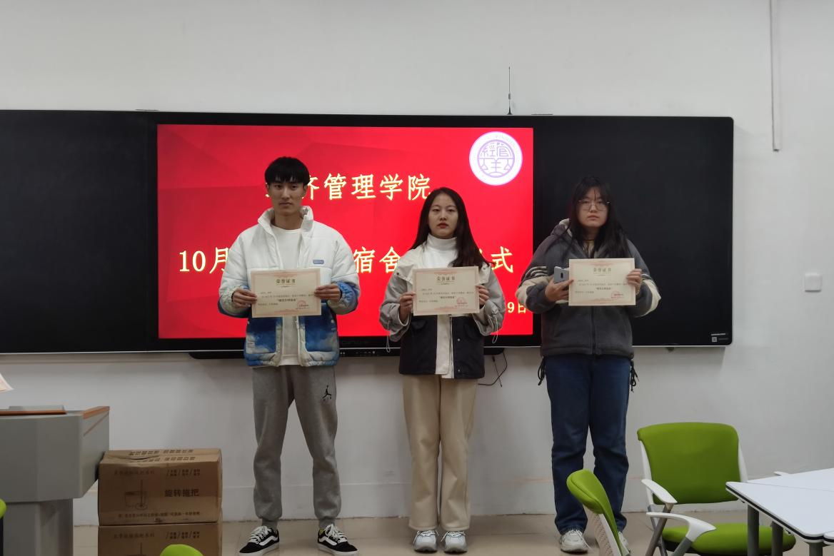11月10日,我院于济南校区一号教学楼304智慧教室举行“10月优秀文明宿舍”颁奖仪式,颁奖仪式由学生会权益检察部组织。
