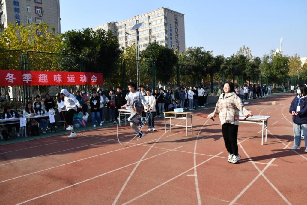 趣味运动会以放松身心、愉悦生活为主旨,采取竞赛形式进行,充分调动了同学们的热情,大家能够积极参与其中。共设“你画我猜”、“集体跳绳”、“集体拔河”等六个比赛项目。