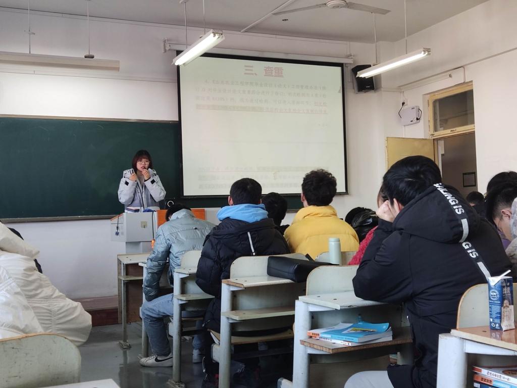 陈岱莲首先介绍了毕业论文(设计)在人才培养中的重要性。毕业论文(设计)是本科人才培养方案中重要的教学环节,是学生综合运用所学知识和技能进行工程技术和科学研究基本训练的主要教学环节,撰写毕业论文(设计)能充分体现学生独立分析问题与解决问题的能力,也是对大学生培养质量的综合性检验,是本科生毕业及学位资格认定的重要依据。接着从毕业论文(设计)工作进度、写作要求、写作技巧、查重注意事项、装档表格规范性要求及毕业论文(设计)管理系统使用等方面向学生做了细致的讲解。她强调同学们一定要按照学校和学院制定的毕业论文(设计)工作进度及具体要求,合理安排时间, 遵循严谨务实、真题真做的原则做好毕业论文(设计)撰写的每一项工作。