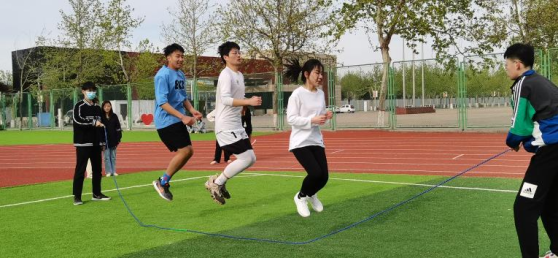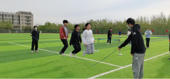 4月15日下午,经济管理学院在齐河校区操场举办跳绳比赛,辅导员李娜、曹奇、王太然老师到场指导。