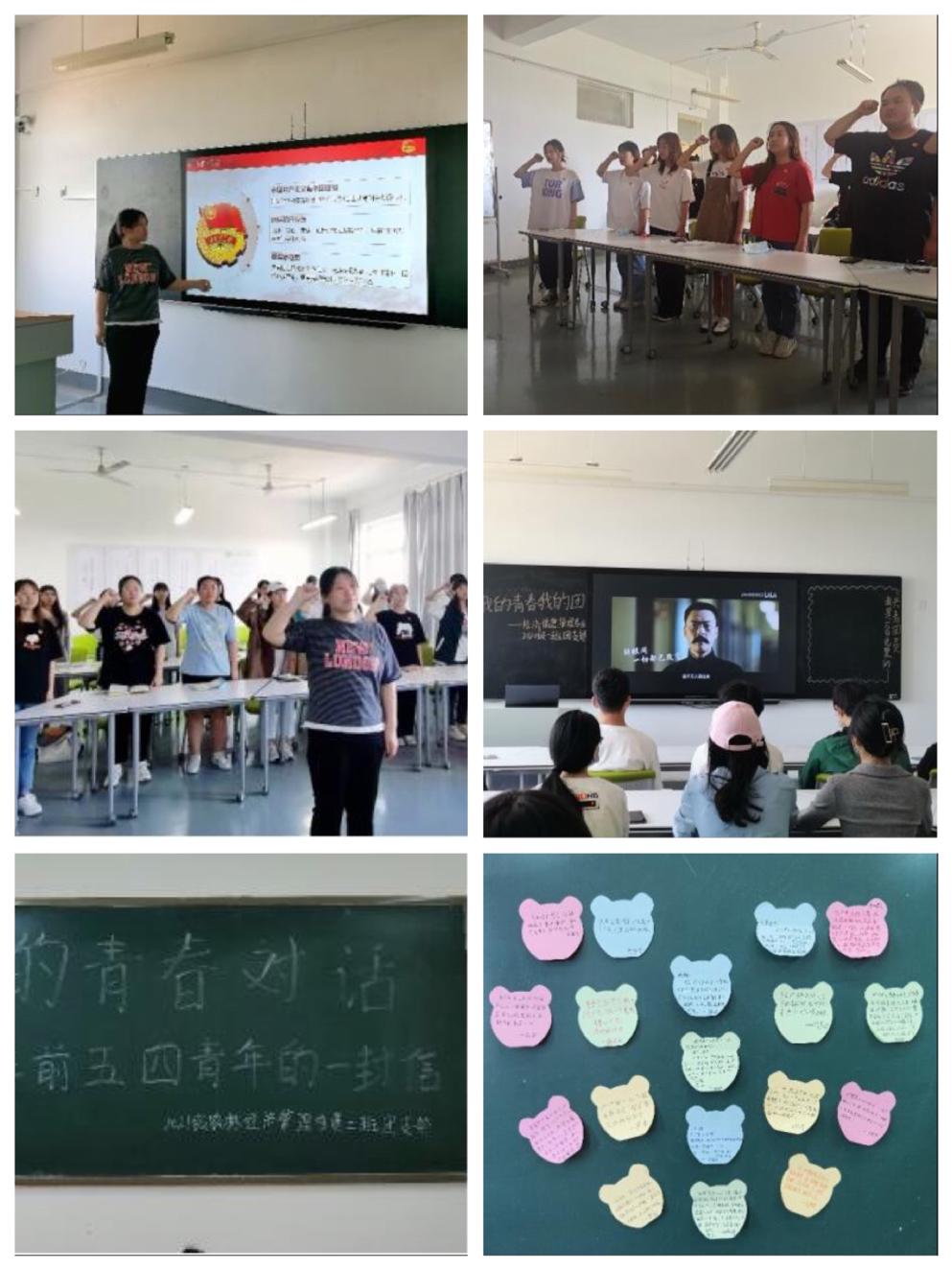 “我志愿加入中国共产主义青年团,坚决拥护中国共产党的领导,遵守团的章程,执行团的决议,履行团员义务,严守团的纪律,勤奋学习,积极工作,吃苦在前,享受在后,为共产主义事业而奋斗。”声声誓言从教学楼传出。5月4日,我院各团支部开展了观影、学团史、重宣誓、写寄语等系列活动继承和发扬五四精神,帮助青年学生厚植爱国主义情怀,激励广大学生坚定远大理想、勇挑时代重担,