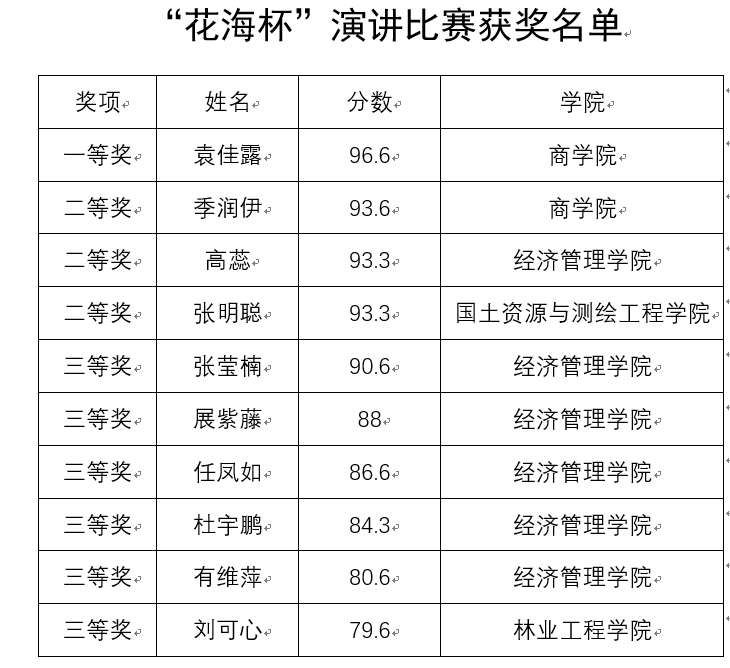 比赛在庆祝中国共产主义青年团成立100周年主题曲《有我》中圆满落幕。经过激烈的比拼,最终角逐出一等奖一名、二等奖三名、三等奖六名,来自商学院的袁佳露同学以96.6的高分斩获第一名。