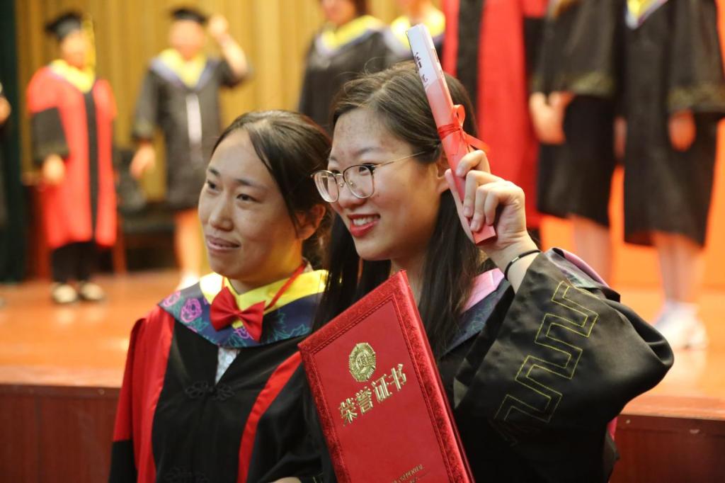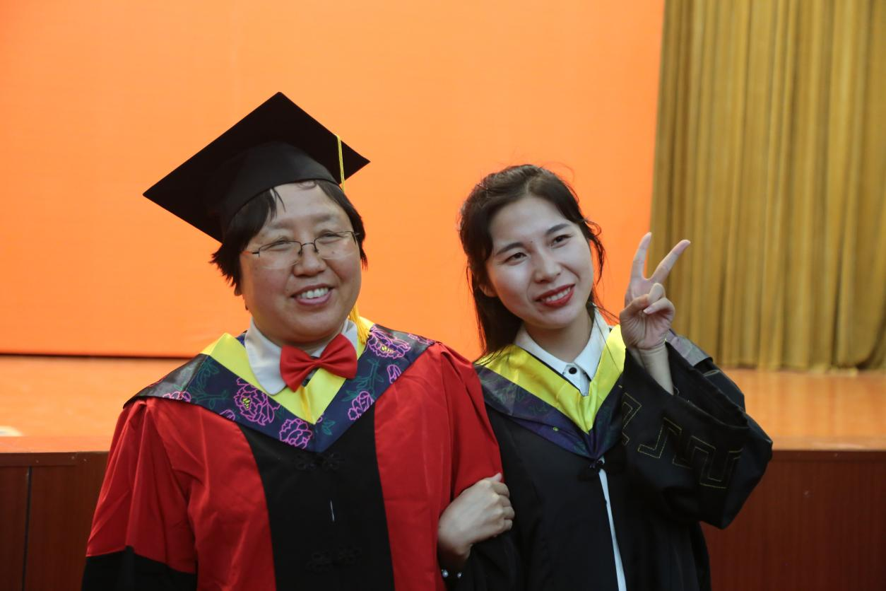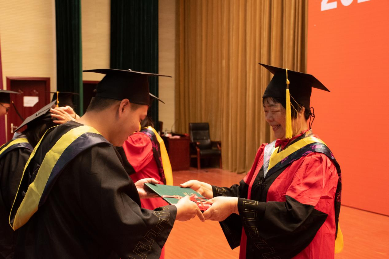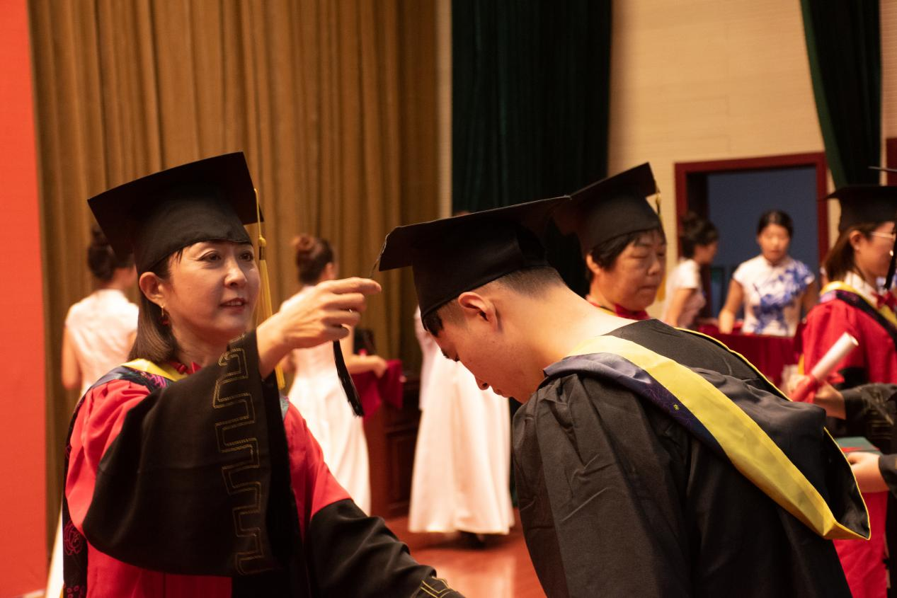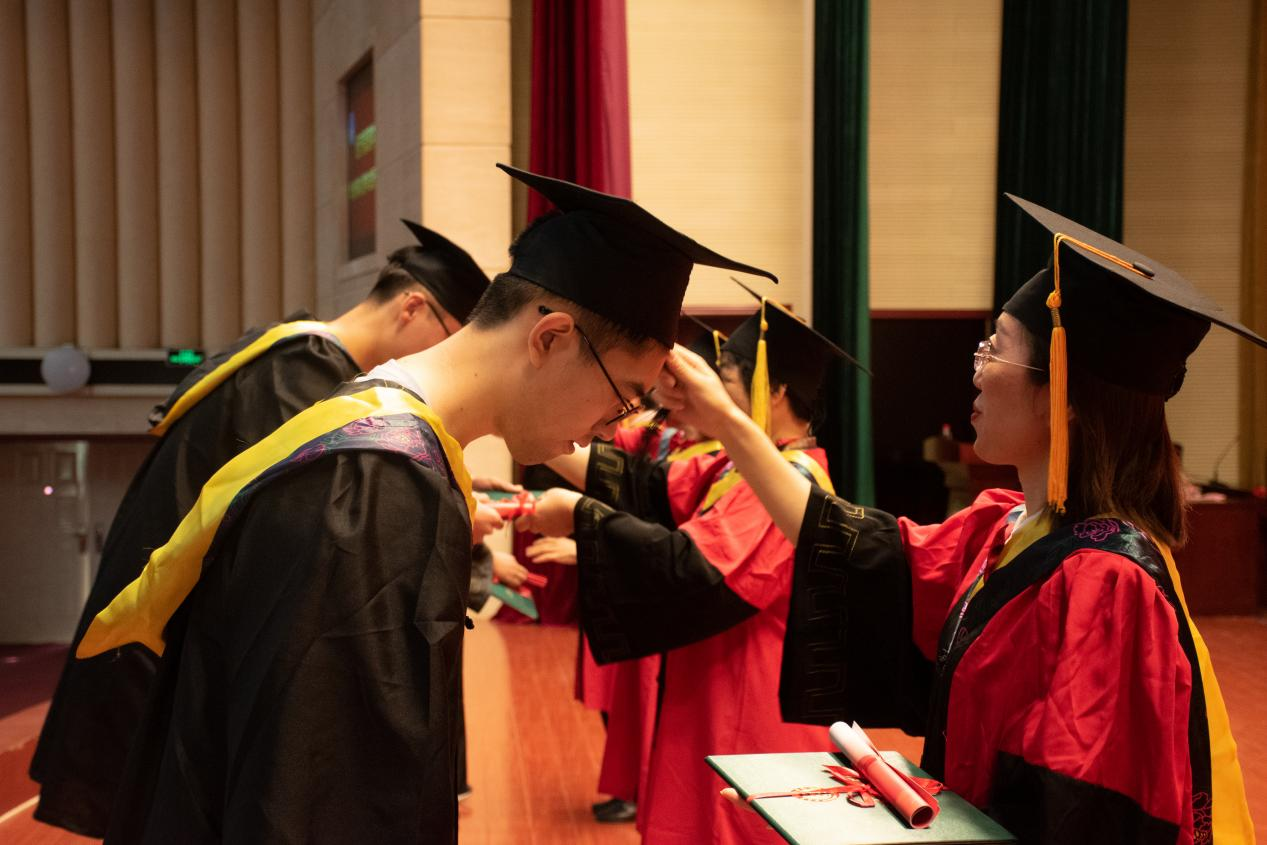 校学位委员会副主席杨玖庆为授学位者拨穗