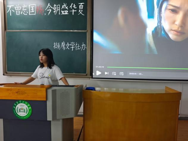 活动由撷鹰文学社社长于晨曦主持,她表示本次观影活动正值“九一八”事变、抗日战争胜利的纪念月,又即将迎来我国第九个法定烈士纪念日,希望同学们擦清历史的镜子,抹去灰尘,勿忘历史,以史为鉴,走好未来的路。