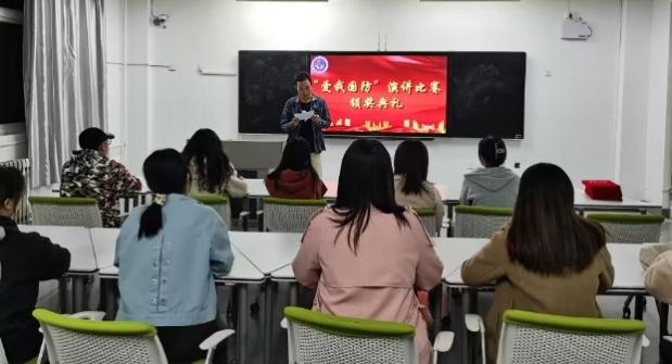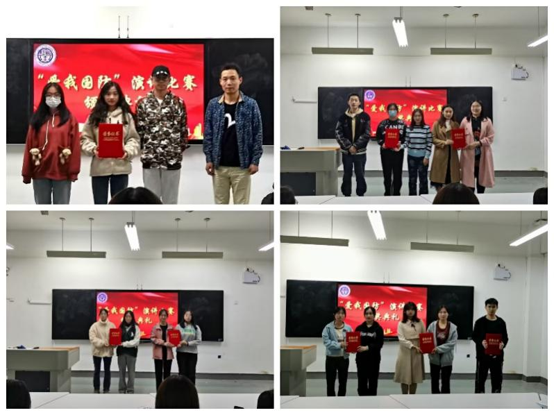 10月23日,经济管理学院在齐河校区二号教学楼510智慧教室举行“爱我国防”演讲比赛颁奖仪式,辅导员曹奇老师为获奖团队颁奖。