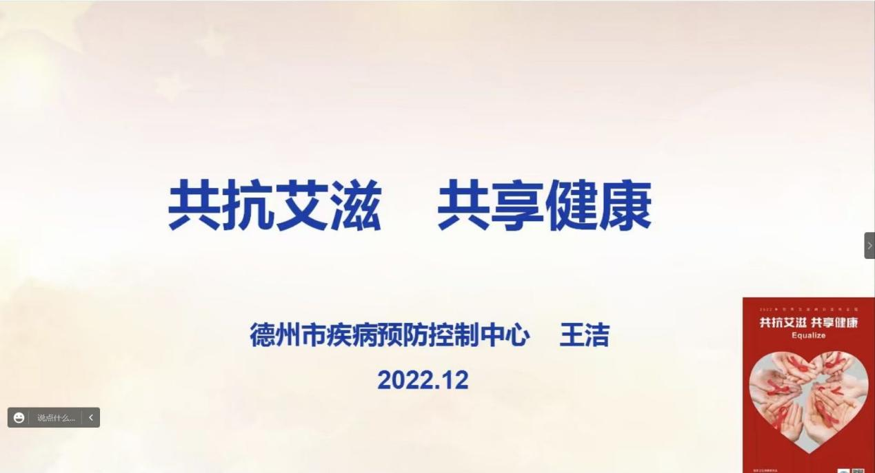 12月11日,我院青春健康同伴社通过线上讲座的方式举办“共抗艾滋,共享健康”主题讲座,本次讲座邀请德州市疾病预防控制中心性病与艾滋病防制科科长、主任医师王洁为今年会师生讲解艾滋病相关知识。