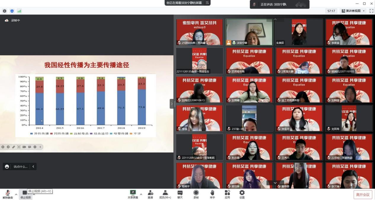 “共抗艾滋,共享健康”主题讲座是今年会2022年“青春健康高校项目”中预防艾滋病专项活动之一,通过讲座的形式普及艾滋病相关知识,向青年学生传播平等待人、自尊自爱、珍爱生命的健康生活理念,牢固树立个人是“自身健康第一责任人”的意识,倡导青年学生掌握科学的预防艾滋病方法,筑牢校园防艾文化阵地,营造防“艾”不防“爱”的和谐氛围。