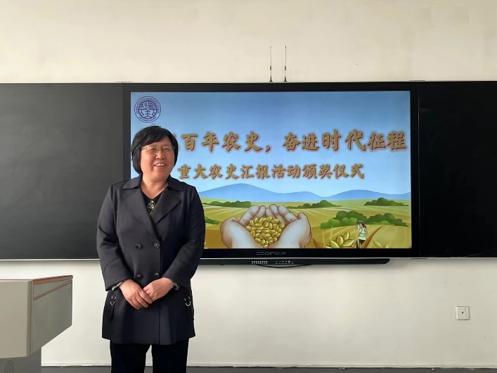 4月11日,经济管理学院“追忆百年农史,奋进时代征程”重大农史汇报活动颁奖仪式在齐河校区2号教学楼510教室举办,颁奖仪式由院学生会秘书处刘雪晴主持,邀请经济管理学院院长李百秀、副院长曲文俏、辅导员李娜老师担任颁奖嘉宾。
