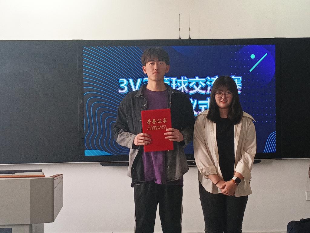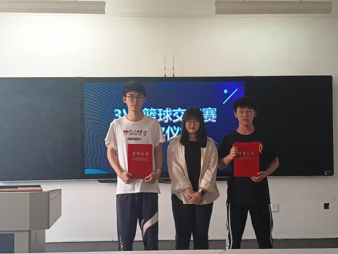 5月10日中午,经济管理学院在齐河校区二号教学楼510智慧教室举行了3V3篮球交流赛颁奖仪式,经济管理学院团总支书记周海霞、辅导员李娜老师为获奖同学颁奖。