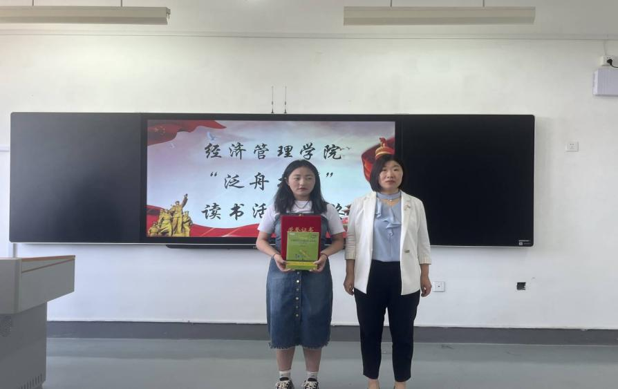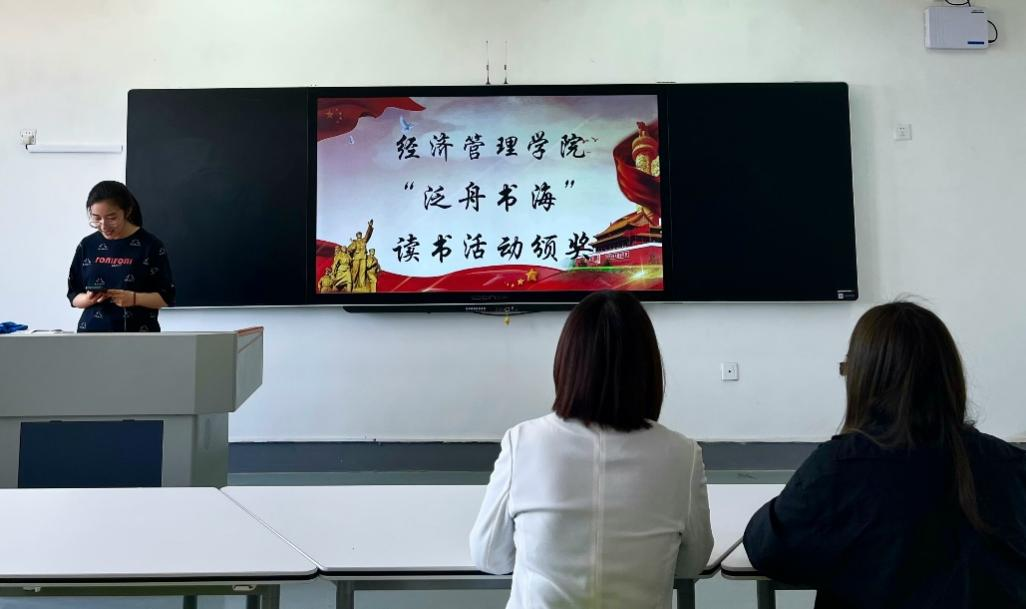 5月22日,经济管理学院在齐河校区二号教学楼510智慧教室举行“泛舟书海”读书交流活动颁奖仪式。经济管理学院团总支书记周海霞老师,辅导员李娜老师出席了本次颁奖仪式。