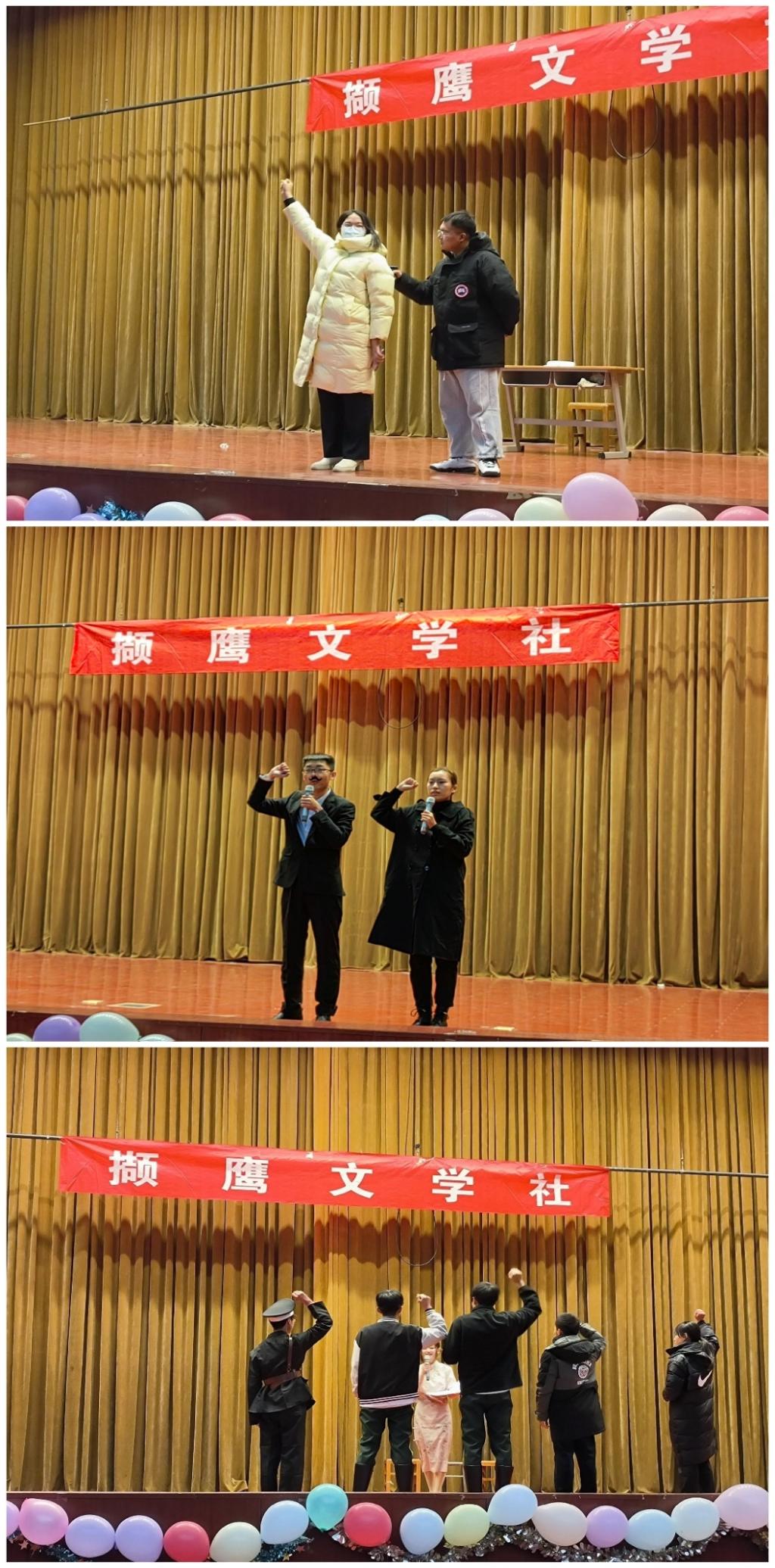 2022年11月29日,由校团委主办,经济管理学院撷鹰文学社承办的“青春逢盛世,吾辈绎峥嵘”舞台剧大赛总决赛于齐河校区学术报告厅成功举办。本次大赛旨在以舞台剧为载体,引导广大青年学生坚定不移听党话、跟党走,知史而明志,资古以鉴今,纵览光辉历程,续写百年荣光。经济管理学院辅导员刘文烨,林业工程学院辅导员刘延姣、玄静,商学院辅导员李清华及撷鹰文学社指导教师李娜担任大赛评委。