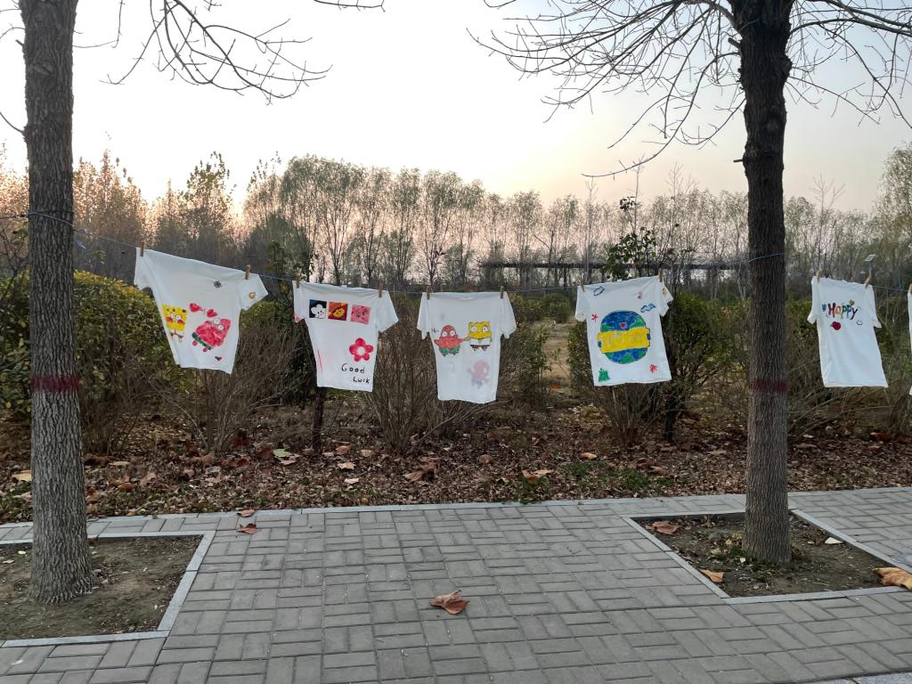 作品完成后,进行了优秀作品评选,评出一等奖两名、二等奖三名,三等奖五名。所有作品都已在校园里挂出展览,所有衣物都将捐给乡村儿童,奉献爱心。
