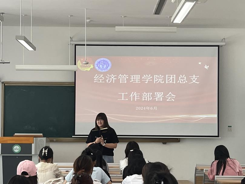 为进一步夯实我院基层团组织建设工作,扎实做好毕业生团组织关系转接工作,保障团组织工作的延续性和完整性,2024年6月3日下午,经济管理学院于文法西楼B105教室开展召开2023年—2024年第二学期团总支工作部署会。本次会议由我院思想政治辅导员李娜主持,全体团支部书记、团干部参加了此次会议。