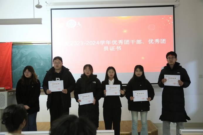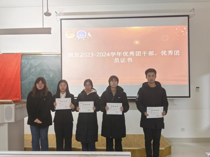 2024年12月17日,经济管理学院于文法西楼B105教室举办2023-2024学年优秀团员、优秀团干部颁奖仪式,我院思想政治辅导员李娜、侯沁菲出席此次颁奖仪式。
