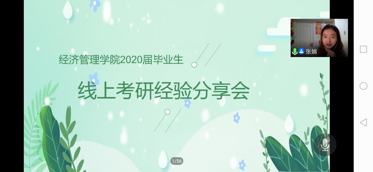 7月18日晚,经济管理学院团总支通过腾讯会议组织了一场线上考研经验分享会,会议由张娟老师主持,物流管理教研室郑爱敏、陈岱莲、贾辉,金融教研室孙萌、李娜等5位专业课老师莅临了此次交流会。2020届6位考取研究生的同学进行考研经验分享,经管学院200多名在校生在线聆听并参与交流,经济管理学院副院长曲文俏代表学院对此次会议的召开表示了衷心的祝贺!