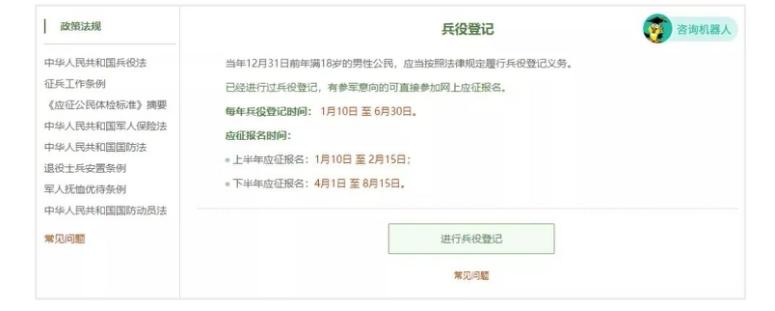 点击右侧的“开始兵役登记”