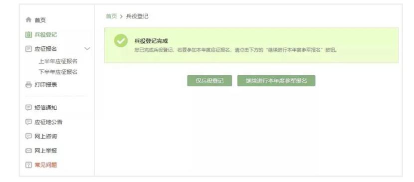 请点击“继续进行本年度参军报名”