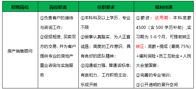 ②岗位晋升:经纪人-店经理-商圈经理-大区总监-城市总经理