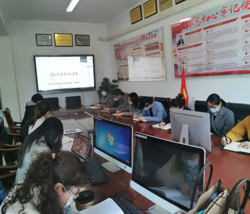 会上,党总支书记颜素杰带领大家认真学习了《关于开展济南校区新冠肺炎突发疫情处置第二次演练通知》和《济南校区新冠肺炎突发疫情处置方案》,详细解读了学生进校、进入宿舍、食堂、图书馆、实验室等场所体温异常或者自感异常时的具体处置流程,以便在特殊情况时可以更好的应对突发疫情,并为确保演练效果做了工作安排。
