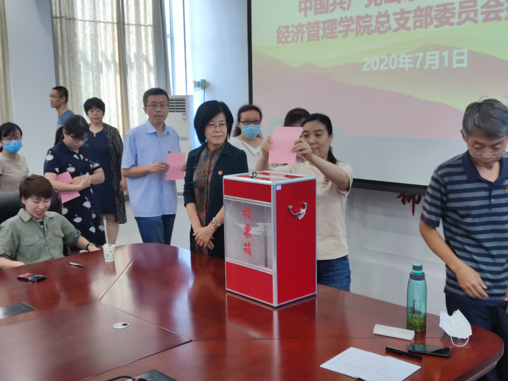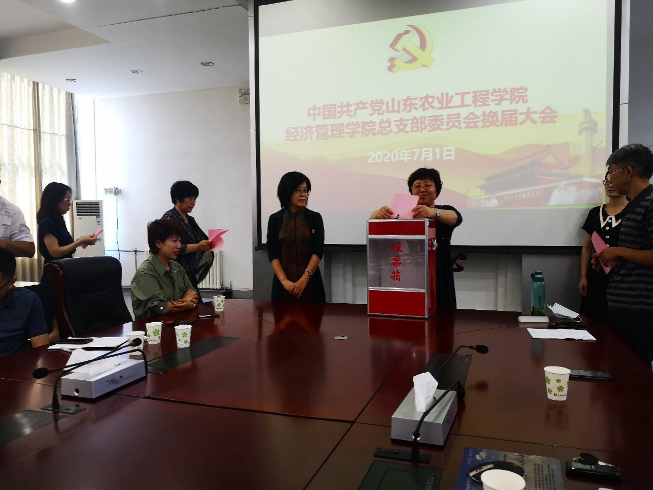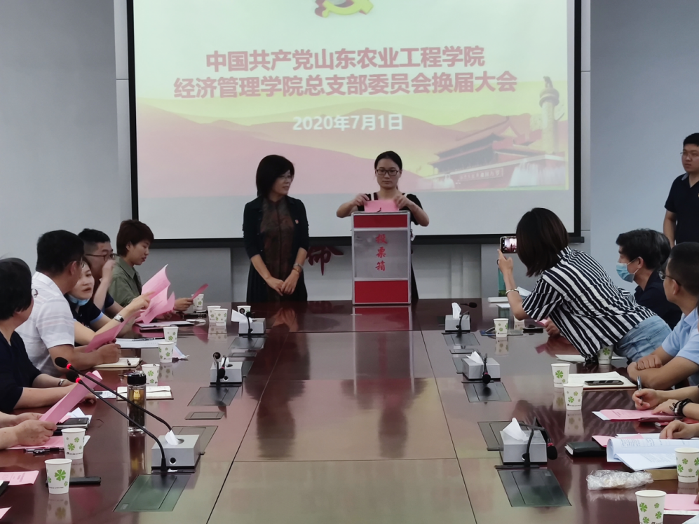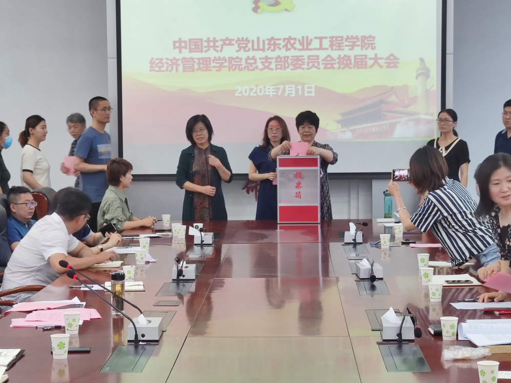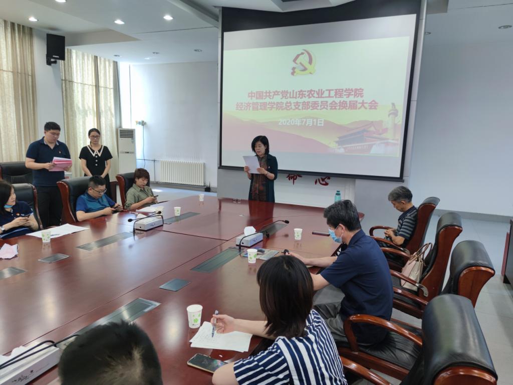 7月1日上午,在庆祝建党99周年之际,经济管理学院党总支在办公楼四楼会议室召开党总支换届选举党员大会。会议由党总支副书记、院长李百秀主持,37名党员参加了本次选举大会。