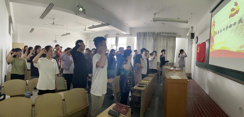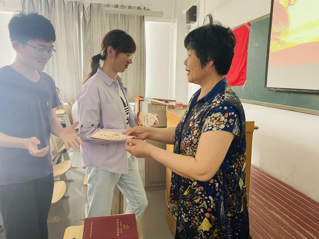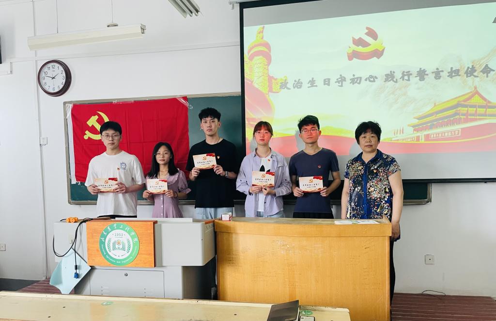 宣誓完毕后,党总支书记颜素杰为过政治生日的党员同志送上政治生日贺卡,并合影留念。毕业生党员也纷纷发言向他们送以最真挚的祝福。