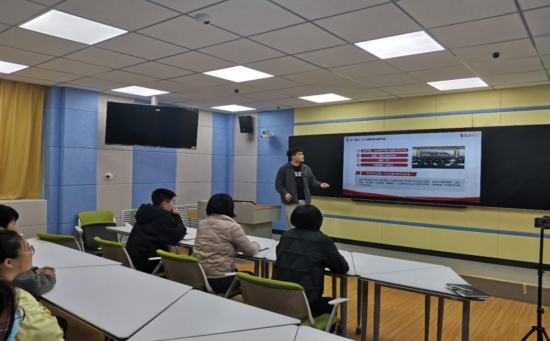杨艺苑首先对党的二十大的内容进行了解读,围绕“过去五年的工作和新时代十年的伟大变革、开辟马克思主义中国化时代化新境界、新时代新征程中国共产党的使命任务、加快构建新发展格局,着力推动高质量发展、实施科教兴国战略,强化现代化建设人才支撑、发展全过程人民民主,保障人民当家作主”等十五个模块进行解读。并以此引出了大会中提出的新观点、新论断。