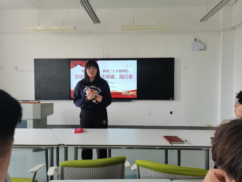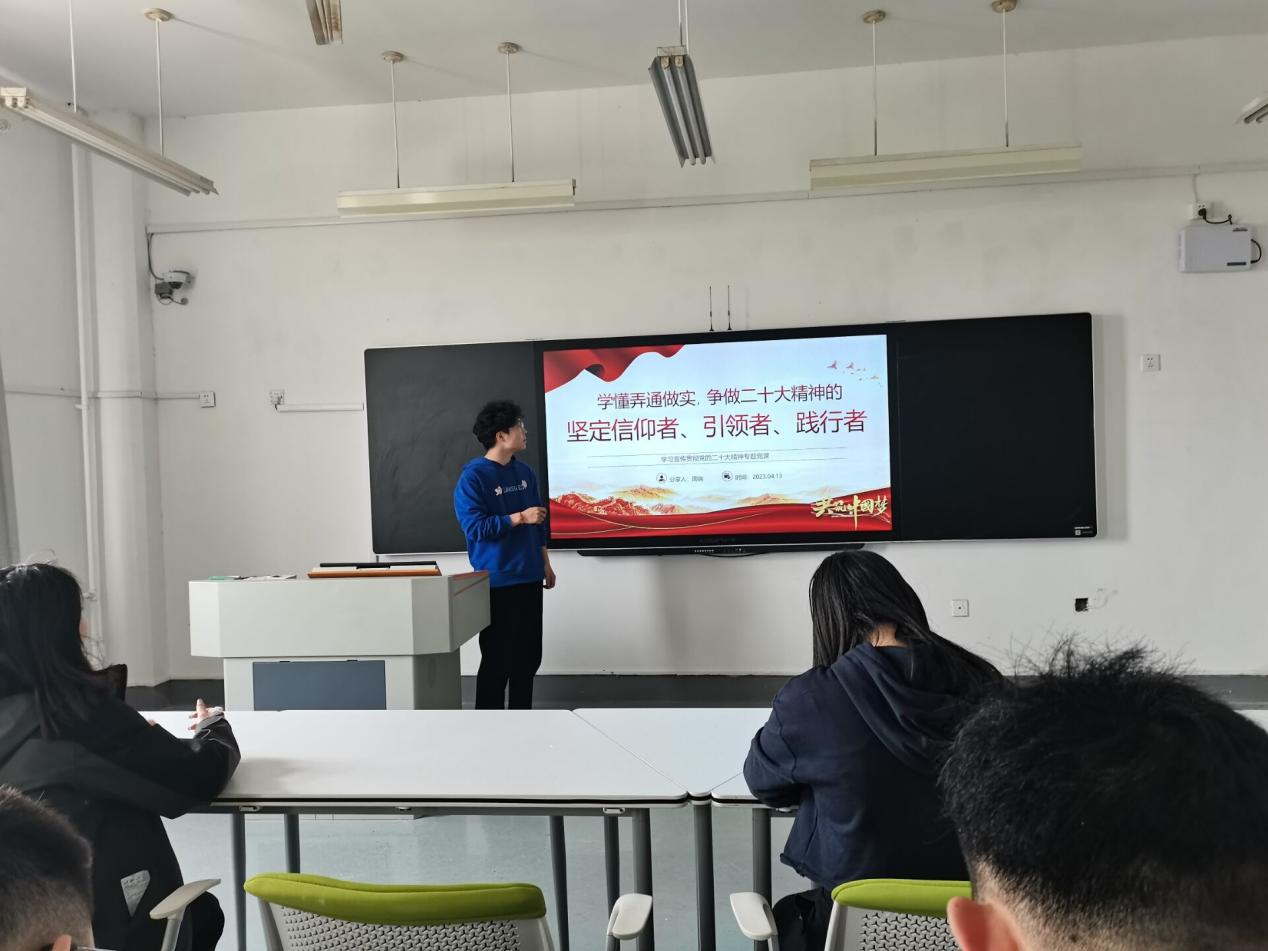 4月13日下午,经济管理学院学生第二党支部在齐河校区2号教学楼510教室开展“学懂弄通做实 ‘争做二十大精神的坚定信仰者引领者践行者’”为主题的学习活动。活动由党支部组织委员李娜主持,学生党员周瑞作分享。