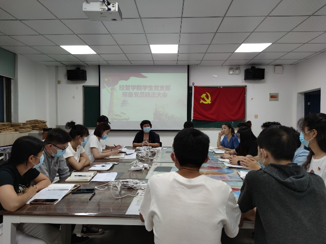 为热烈庆祝中国共产党成立99周年,更好教育引导学生党员牢记初心使命,坚定理想信念,发扬实干精神,6月30日下午,经济管理学院学生党支部开展主题党日活动:预备党员转正大会。此次大会,既是一次预备党员转正会,又是一堂全面加强党建工作的主题教育课。