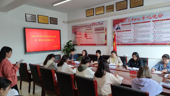 会议在庄严的国歌声中开始,首先,由35名入党申请人分别宣读了《入党志愿书》,汇报了自己对党的认识、入党动机以及渴望加入党组织的决心等。入党介绍人介绍了拟发展对象在培养考察期的发展状况。学生党支部全体正式党员经无记名投票表决,一致同意接收王立君等35名同学加入中国共产党,结果将报上级党组织进行审批。