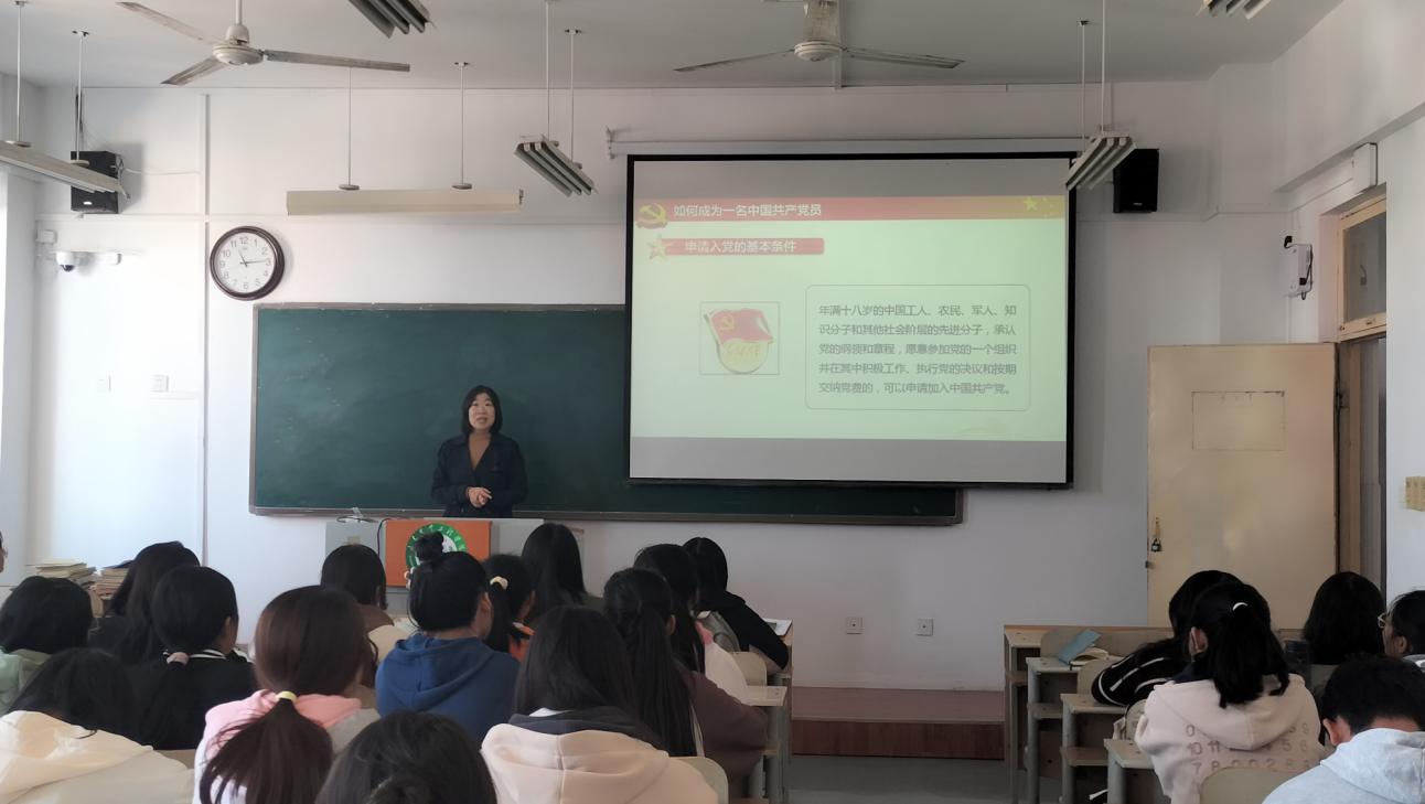 2022年10月11日、12日分别在齐河校区526教室、509教室,经管学院学生第一党支部书记周海霞围绕着入党教育为2022级新生上了一堂党课。